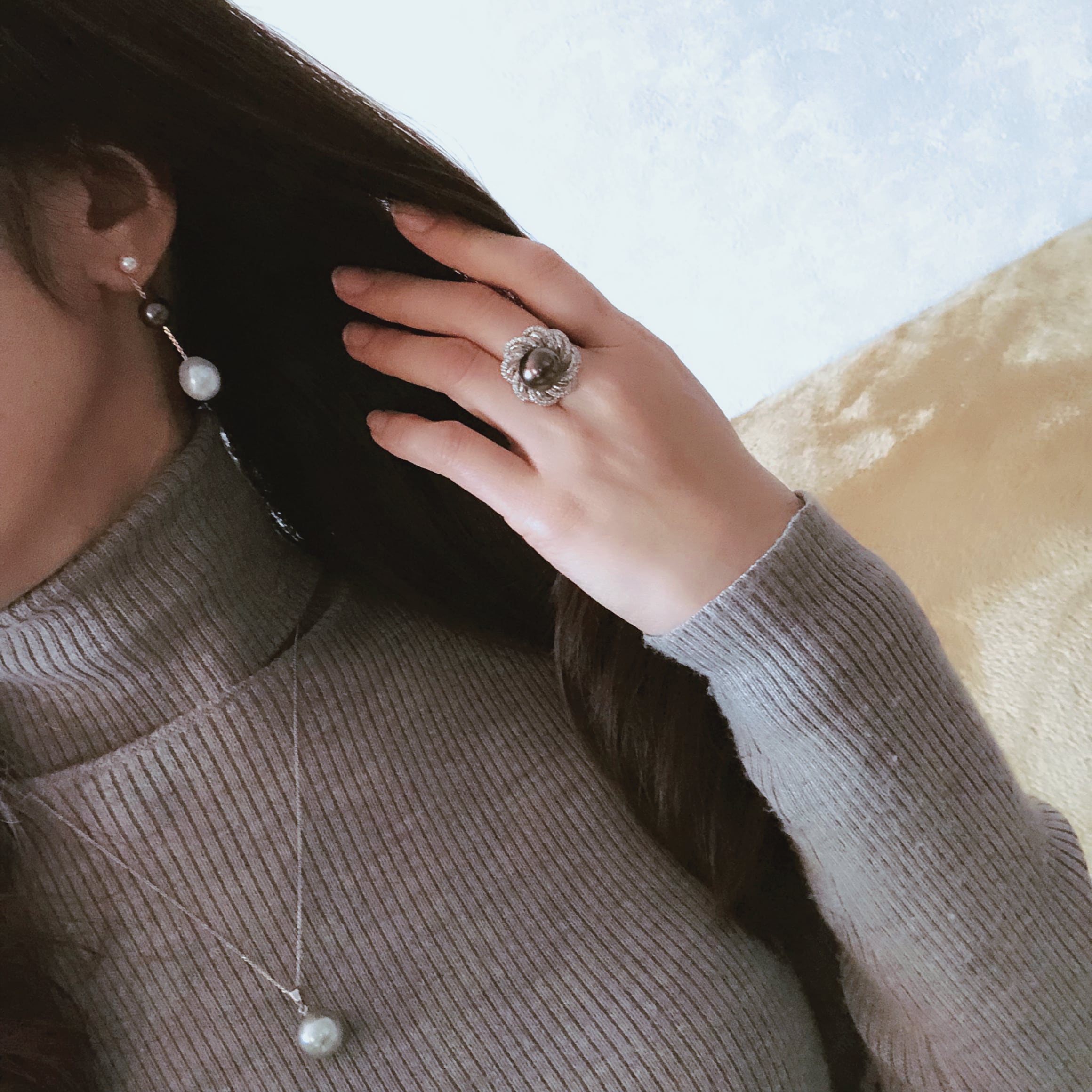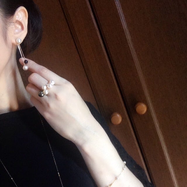 南洋黒蝶真珠とあこや真珠が楽しめるrubanrubanオリジナルのダブルリングです。 南洋黒蝶真珠/あこや真珠 K18イエローゴールド 発売当時価格 ¥80.000- 現在発売未定