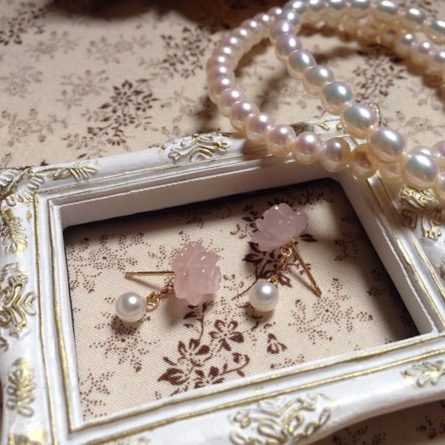 まず、アンティークな雰囲気を持つこのダイヤモンド部分のデザインがとっても魅力的なところに惹かれて、この素敵なデザインに合わせるパールは、絶対にあこや真珠!大きさは8ミリで!と、妥協を許さずツヤツヤの大粒8ミリのあこや真珠を選びました。 イメージ通り、繊細さと存在感のある素敵なピアスになりました! 似たようなデザインは数あると思いますがこのダイヤモンドのデザインはなかなか見ないと思います! ヴィンテージと呼ばれる昔のジュエリーは質もデザインもとても良く、そして贅沢な作りをしている物が多いですが、そのように受け継がれ、長く愛されてきた雰囲気を感じさせる素敵なデザインピアスに仕上がりました♪ 一点物。再販無し。現品。お届けまで1週間程度。 あこや真珠:約8ミリ K18イエローゴールド、ダイヤモンド *自然光の元iPhoneにて撮影しております No.24034200004