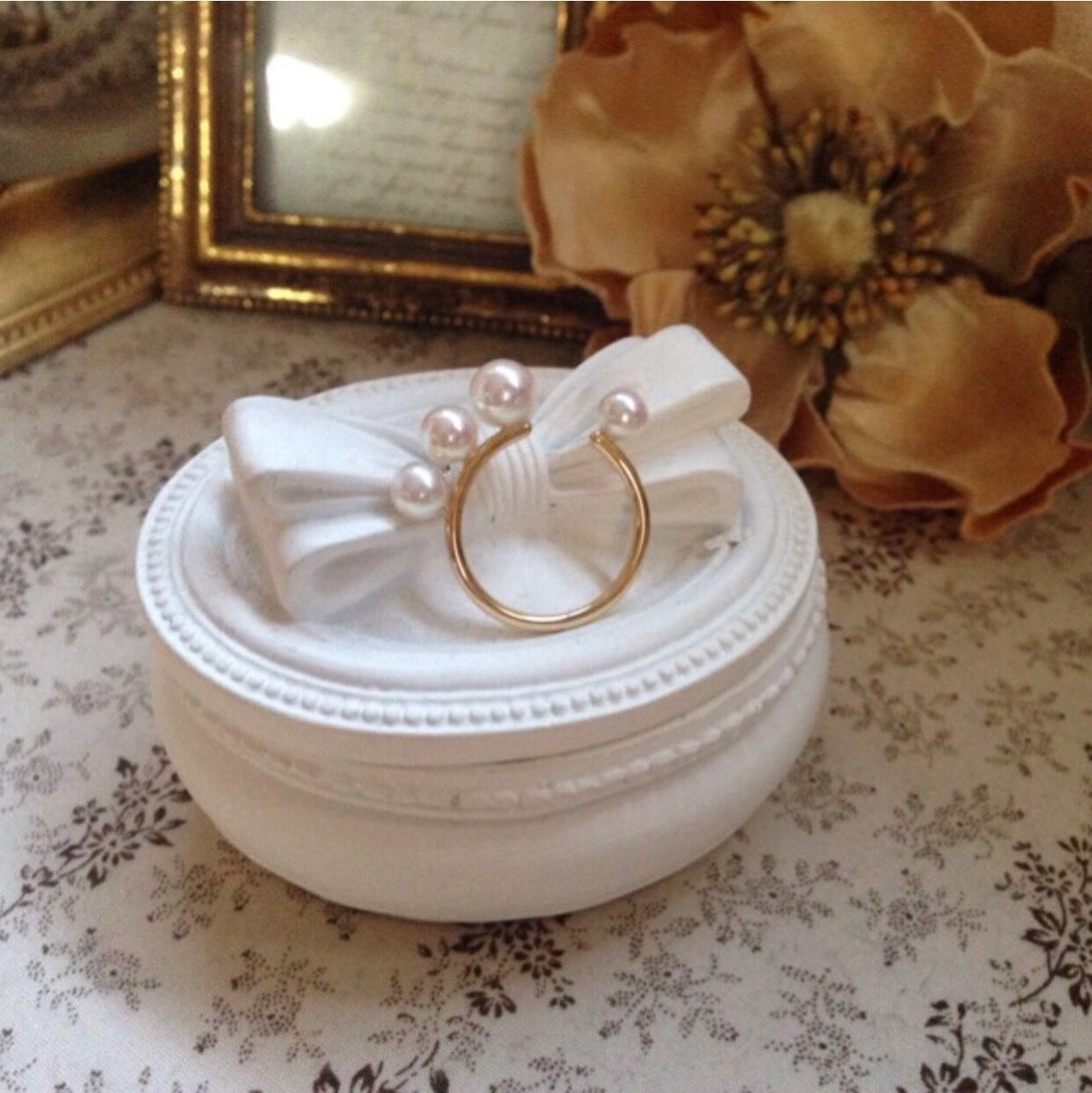 生産者がいなくなり作られる数も少なくなり、年々貴重となっているベビーあこや真珠を使用したとってもさりげなく可愛いデザインリングです。